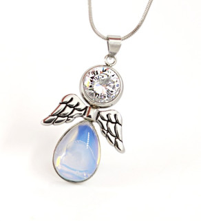 Original czech handmade jewelry set with opal 14x10mm and zirconia 8mm. Set includes pendant 30mm with the 45cm stainless steel chain and Hook earrings 35mm or clip earrings 20mm.